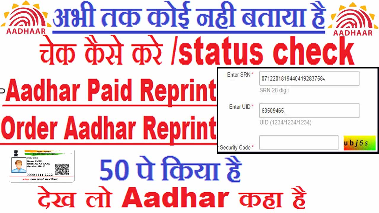 order aadhar reprint check kaise kare,