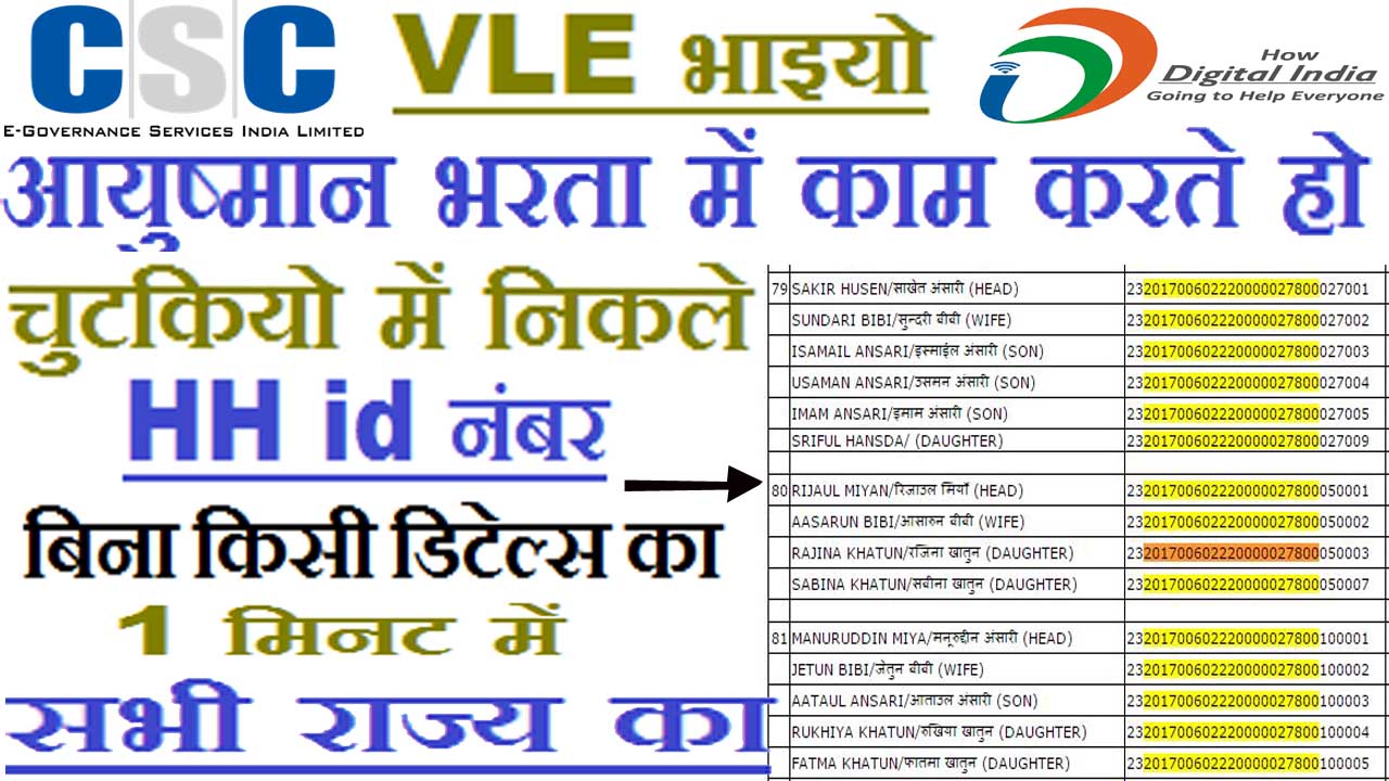 आयुष्मान भारत संचालक के लिए खुशखबरी आप अगर HH ID नंबर से kyc करते हो तो आप किसी भी राज्य किसी का भी HH ID नंबर एक मिनट में कैसे निकालोगे