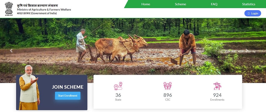 यह देश के सभी छोटे और सीमांत किसानों (एसएमएफ) के लिए वृद्धावस्था पेंशन योजना है। रुपये के भुगतान के प्रावधान के साथ 18 से 40 वर्ष के आयु वर्ग के लिए यह एक स्वैच्छिक और अंशदायी पेंशन योजना है। 60 वर्ष की आयु प्राप्त करने पर 3000 / – मासिक पेंशन, कुछ विशेष मानदंडों के अधीन।